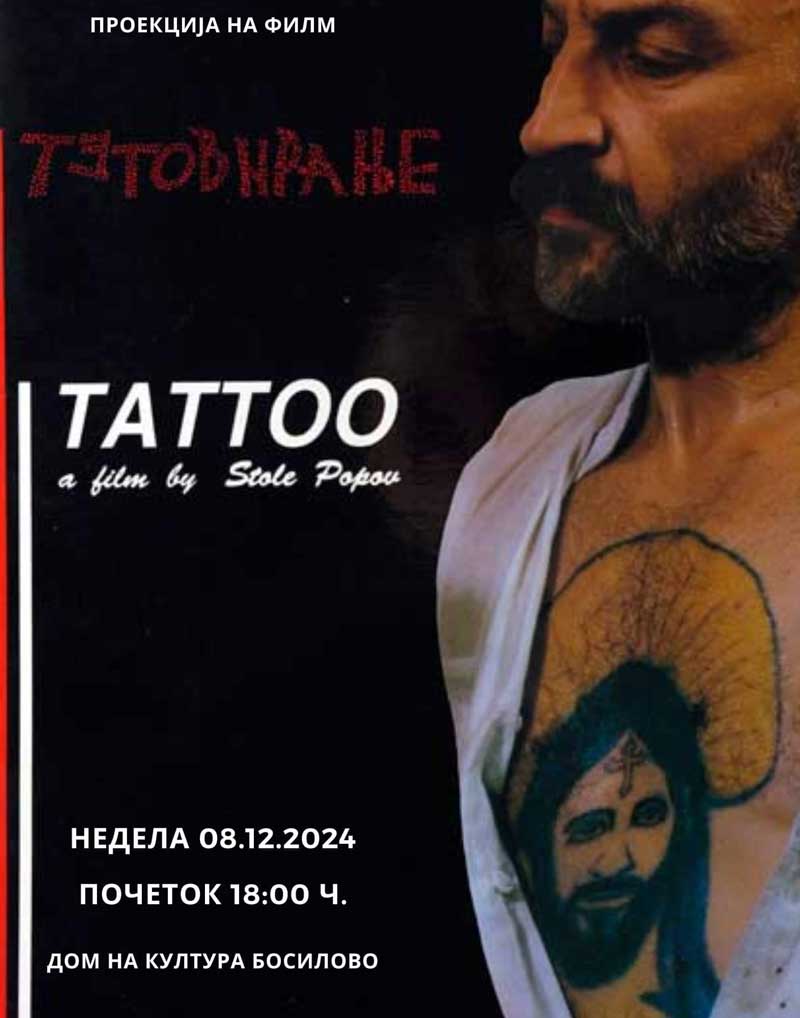 Во недела, 8 декември во 18:00 часот во Домот на културата во Босилово ќе се прикажува „Тетовирање“ – македонски филм, режиран од Столе Попов, главната улога ја игра Мето Јовановски.