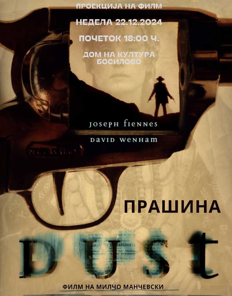 Во недела, 22 декември од 18:00 часот во Домот на културата во Босилово ќе се прикажува филмот „Прашина“, ремек дело на македонскиот режисер Милчо Манчевски. Повелете во затоплената сала во Домот на културата. Влезот е слободен.