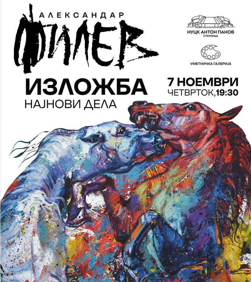 Во четврток, 7-ми ноември од 19:30 часот во Центарот за култура „Антон Панов“ во Струмица познатиот ликовен уметник, струмичанецот Александар Филев ќе ја постави својата самостојна изложба со 90 нови дела, импресивна колекција со голем формат создадени во последните пет години.