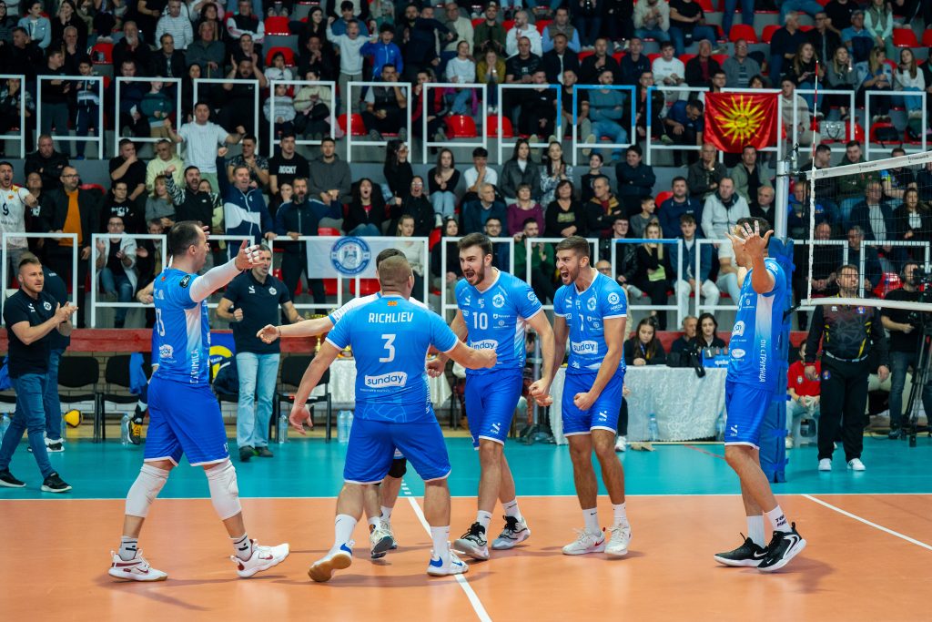 Во многу тежок натпревар со многу пресврти по сетови, струмичките одбојкари се изборија во финишот за победа од 3:2 (25:11, 19:25, 25:22, 13:25, 15:13) и потврда на амбициите за нов шампионски пехар.