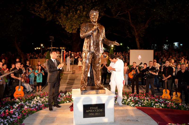 „На Гоце Арнаудов не му е потребен споменик. Тој својот споменик го подигна со испеаните песни. Споменикот ни е потребен нам на струмичани, за да ни биде сведоштво за почитта која ја имаме кон човекот кој ја прославил Струмица надалеку, за да биде гордост на неговите современици и на генерациите кои доаѓаат по нас“ – кажа тогаш во своето обраќање поранешниот градоначалник на Струмица, Зоран Заев, откривајќи го споменикот со уметникот Тошев.