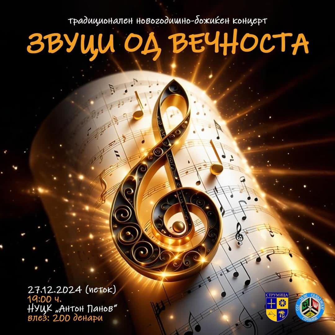 Се ближи традиционалниот Новогодишно-Божиќен концерт на учениците од СОУ „Јане Сандански“ од Струмица, годинава насловен „Звуци од вечноста“. На четири дена пред Новата 2025 година, петок, 27 декември од 19:00 часот во Центарот за култура „Антон Панов“ во Струмица.
