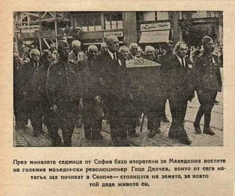 Саркофагот со посмртните останки на Гоце Делчев од 1946 година се наоѓа во дворот на црквата „Св. Спас“ во Скопје.