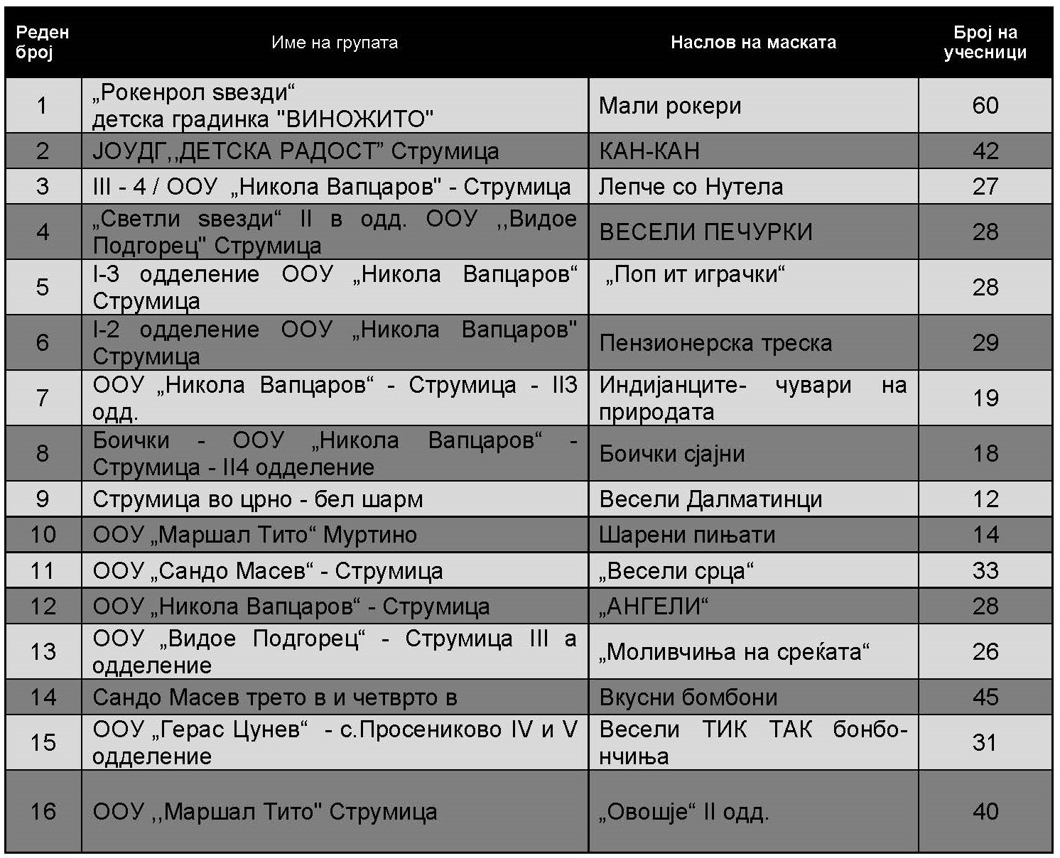 Детски карневал во Струмица, на сам ден Прочка, како дел од традиционалниот Струмички карневал 2025. Најмалите и годинава ќе се маскираат во голем број, ќе има 480 карневалчиња во 16 карневалски групи, од струмичките градинки и основни училишта. Сите со најразлични маски, секој според својата замисла, идеја и желба како сака да изгледа со помош на повозрасните. Стартот во недела е закажан во 11:00 часот, а ќе продефелираат низ струмичкото корзо кон плоштадот „Гоце Делчев“.