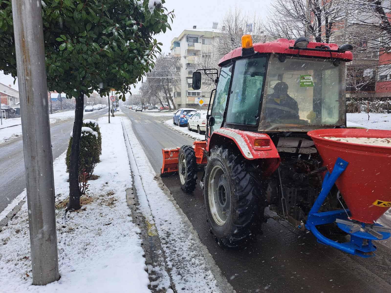 Како што не информираше Бранко Ѓоргиев, раководител на Одделението за „Комунална хигиена“ и „Зимската служба“ при струмички „Комуналец“, четири возила се на терен, еден камион со плуг за расчистување на снегот, два трактори со плуг и циклони и еден трактор со циклон со сол интензивно работат на расчистување на уличната мрежа и фрлање сол низ градот. Опфатени се сите улици во градот Струмица. До овој момент фрлени се околу 1,5 тон сол. Околу 25 вработени во „Комуналец“ се ангажирани за рачно чистење на тротоарите во градот.