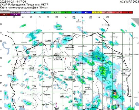 Во моментот источниот и јужниот дел од државата е зафатен со нестабилна воздушна маса проследена со пороен дожд и на одредени места и град. Со град се зафатени селата Куклиш и Свидовица во струмичко и нестабилната воздушна маса се движи на север кон градот Струмица и се очекува градското подрачје да биде зафатено со пороен дожд.