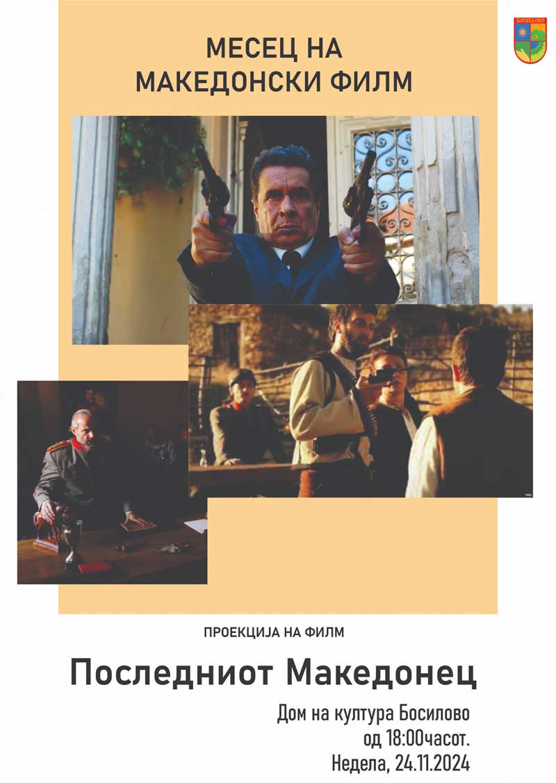 Во недела, 24 ноември од 18:00 часот во Домот на културата во Босилово ќе биде прикажан македонскиот документарен игран филм „Последниот Македонец – патот до истребување“ во режија на Илија Пиперковски. Сценариото во филмот е на Александар Кукулев, продуцент е Снежана Лупевска Созен, кинематографер Дејан Димески, а монтажа Данчо Стевков.