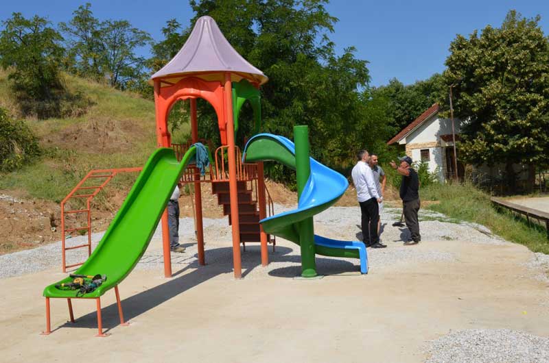 На влезот од старо Владевци, веднаш до кошаркарското игралиште се гради Детски забавен парк. Активностите се при крај, се поставуваат реквизитите, а ангажираните работници ги изведуваат финалните активности на подлогата.