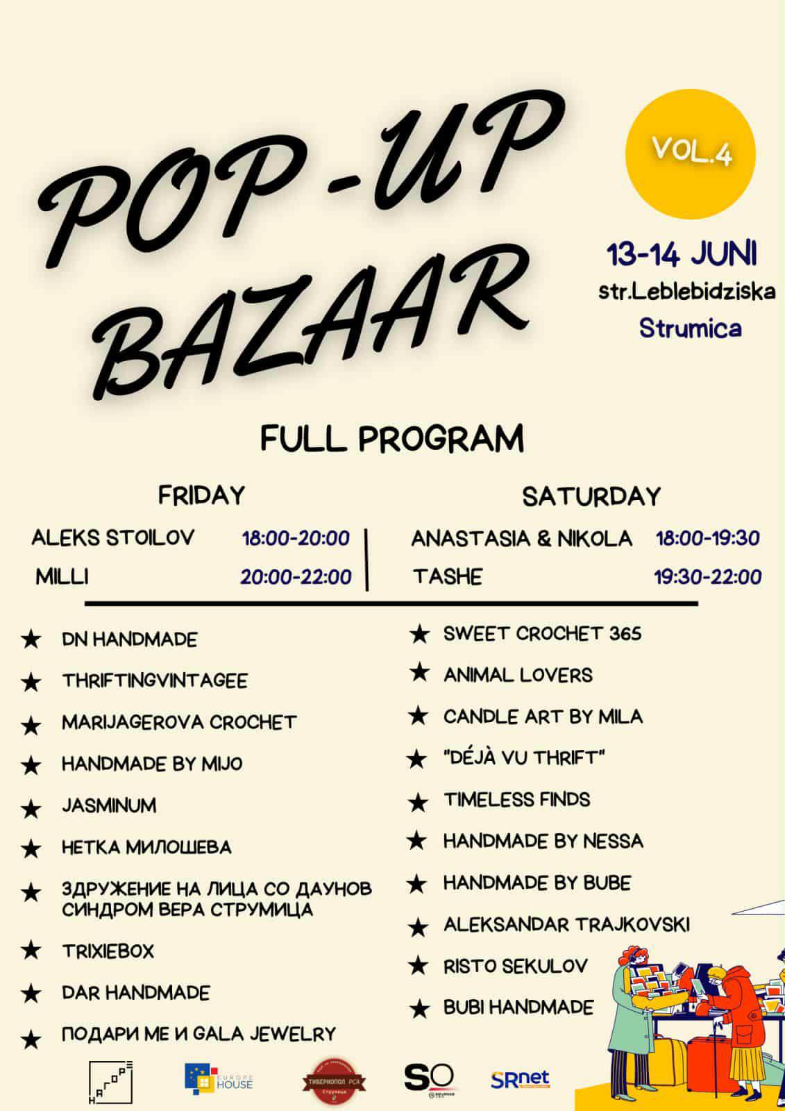 PopUp базарот ќе се одржи во петок и сабота (13 и 14 јуни), ќе започнува во 18:00 часот и се планира да трае некаде до 22:00 часот.