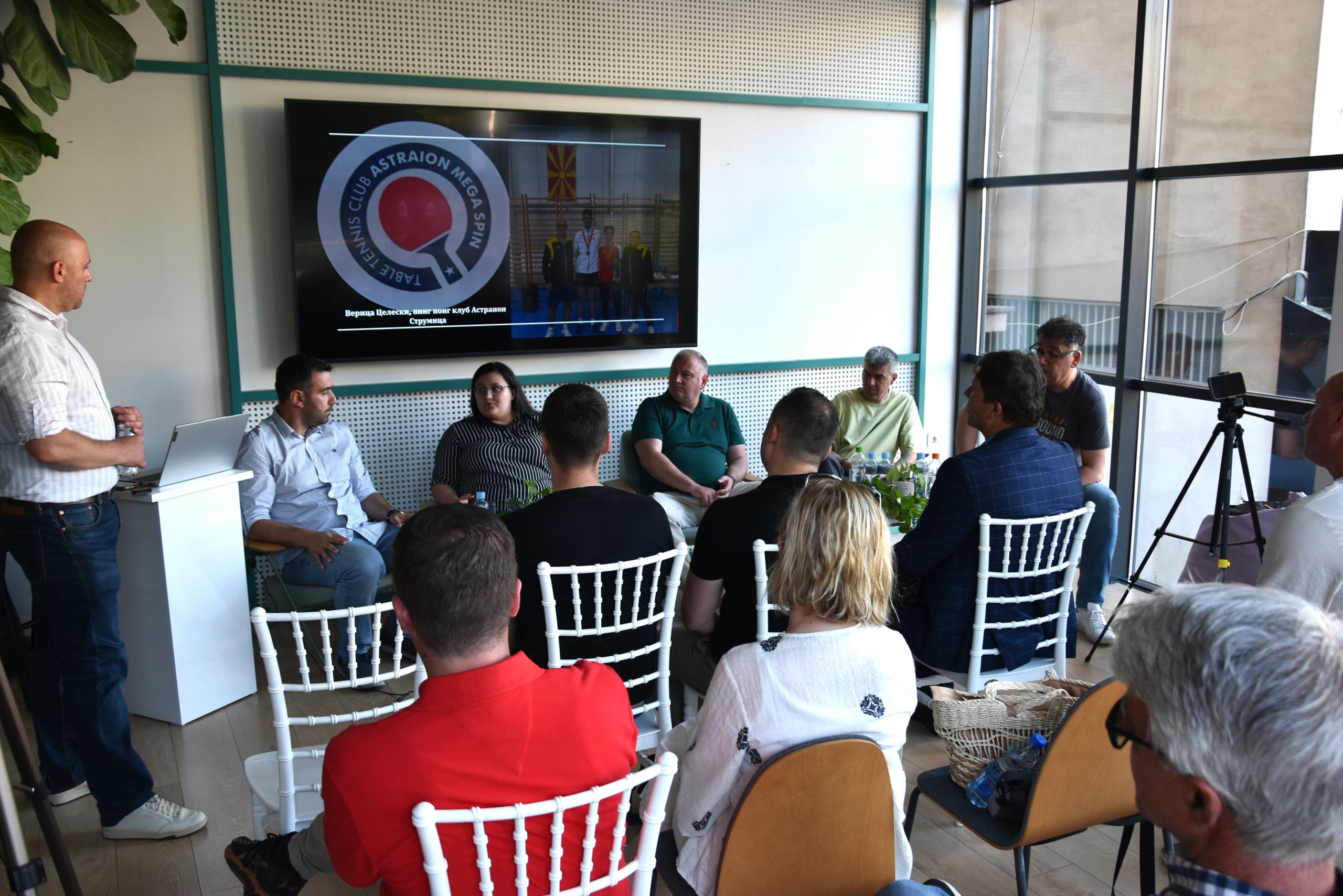 Доцна попладнето во „Јуроп Хаус“ во Струмица се одржа панел дискусија за предизвиците за спортот во Струмица поврзани со инфраструктура и финансии. Организатор на панелот беше Александар Илиев од Демократски институт за општествени и политички анализи Струмица. Панелисти беа Трајче Атанасов, претставник на шамионскиот Одбојкарски Клуб Струмица, Томе Христов, фудбалски тренер, Атанас Цикарски, кошаркарски тренер и професор по спорт, Митко Алачки, професор по спорт и Верица Целески, претставник на пинг-понг клуб Астраион.