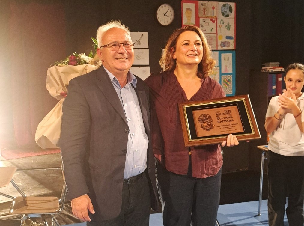 Вечерва на сцената на Драмски театар по завршување на изведбата на претставата „Гидионовиот јазол“, директорот на Фестивалот на камерен театар „Ристо Шишков“, Ване Ристов Патриков ја додели наградата за највисоко актерско остварување „Ристо Шишков“ на актерката Биљана Драгичевиќ Пројковска, лауреат на 33-то издание на овој реномиран струмички фестивал на актерите.