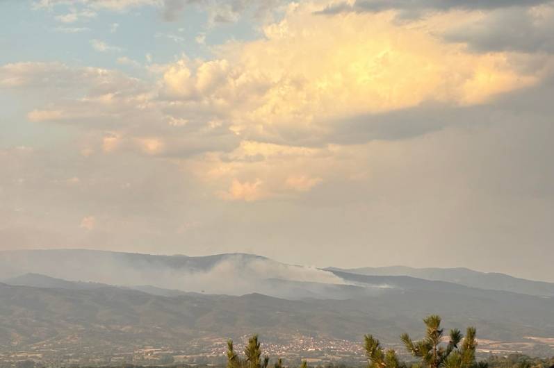 Избувнал голем пожар на планината Огражден над селото Бадилен, општина Ново Село во граничниот појас и се шири кон границата со Бугарија. Гори густа борова шума и е на висок непристапен терен. Информацијата ни ја потврди командирот на Противпожарната единица на Струмица, Александар Гудев, но засега пожарникарите не можат да интервенираат. Во координација се со ЦУК и со колегите од Петрич ја следат состојбата. Договорено е утре во 8 часот да интервенираат хеликоптери на МВР…