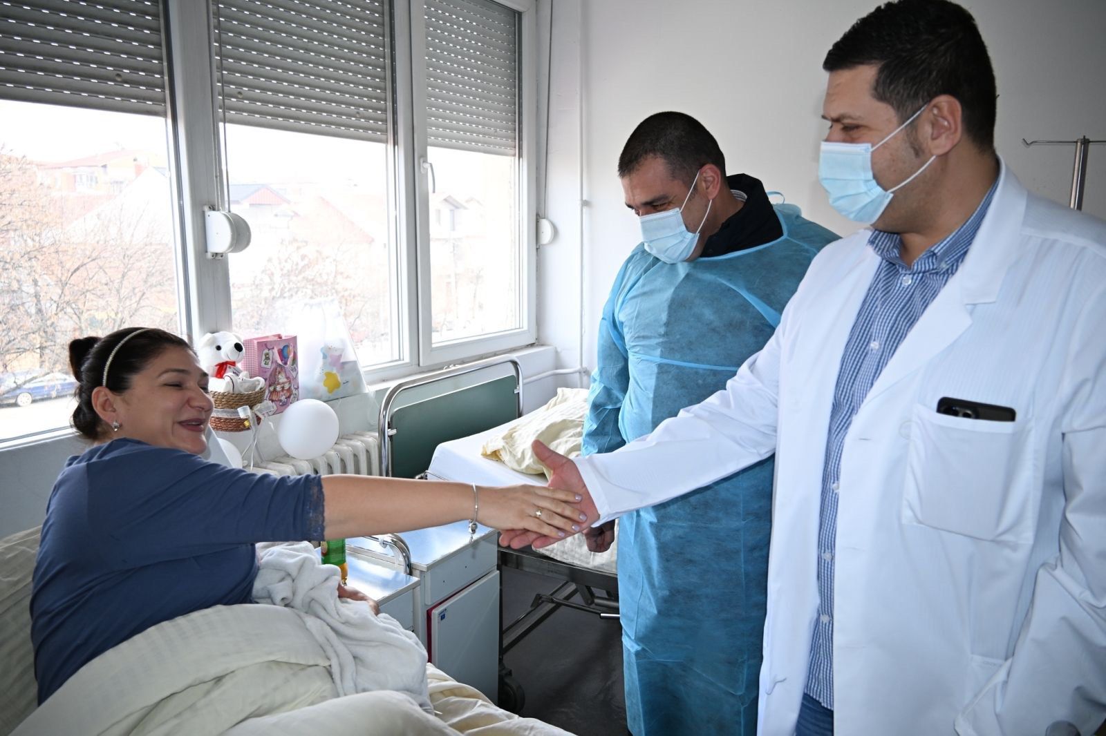 Мајката и бебето добија од градоначалникот Јанков и Општина Струмица штедна книшка со 40.000 денари и пригодни подароци.