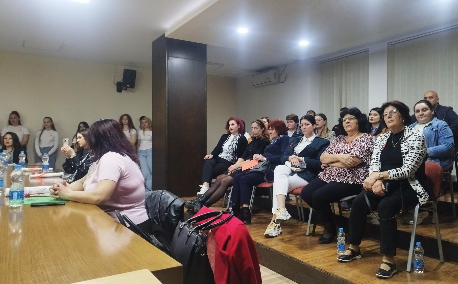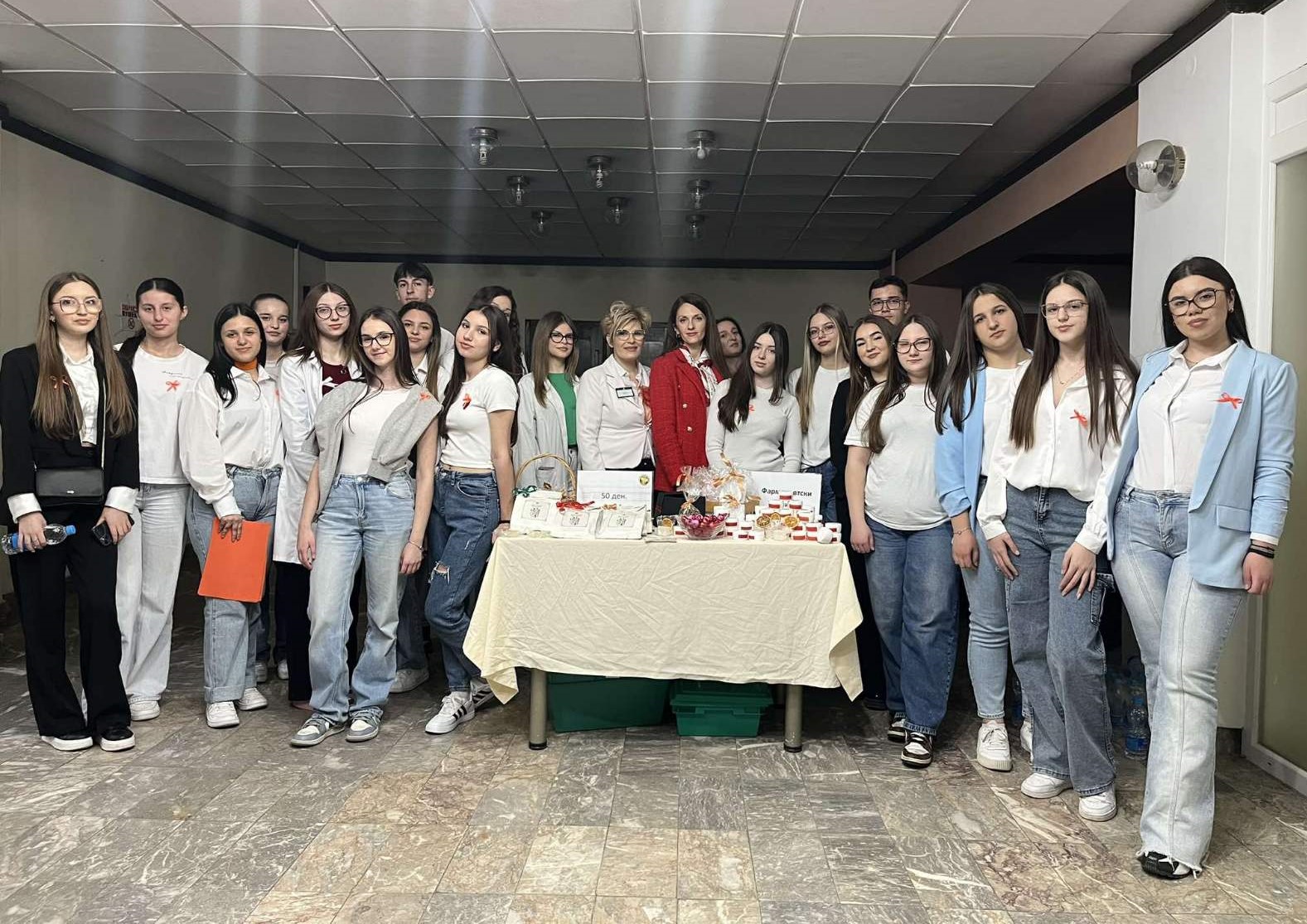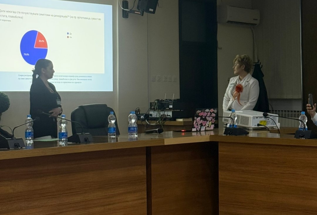 Емилија Котеска професор во СОУУД „Димитар Влахов“ и ученичката во трета година – медицинска сестра, Александра Милушева говореа на тема „Водата и здравјето на бубрезите“.