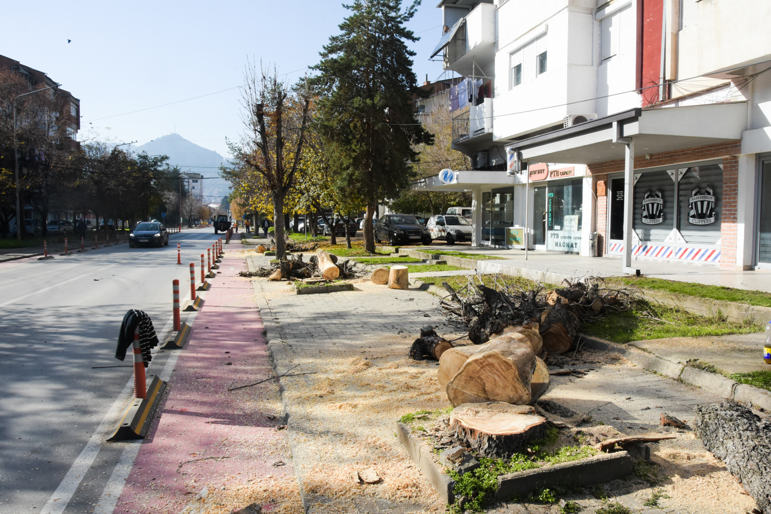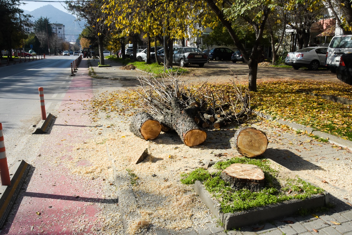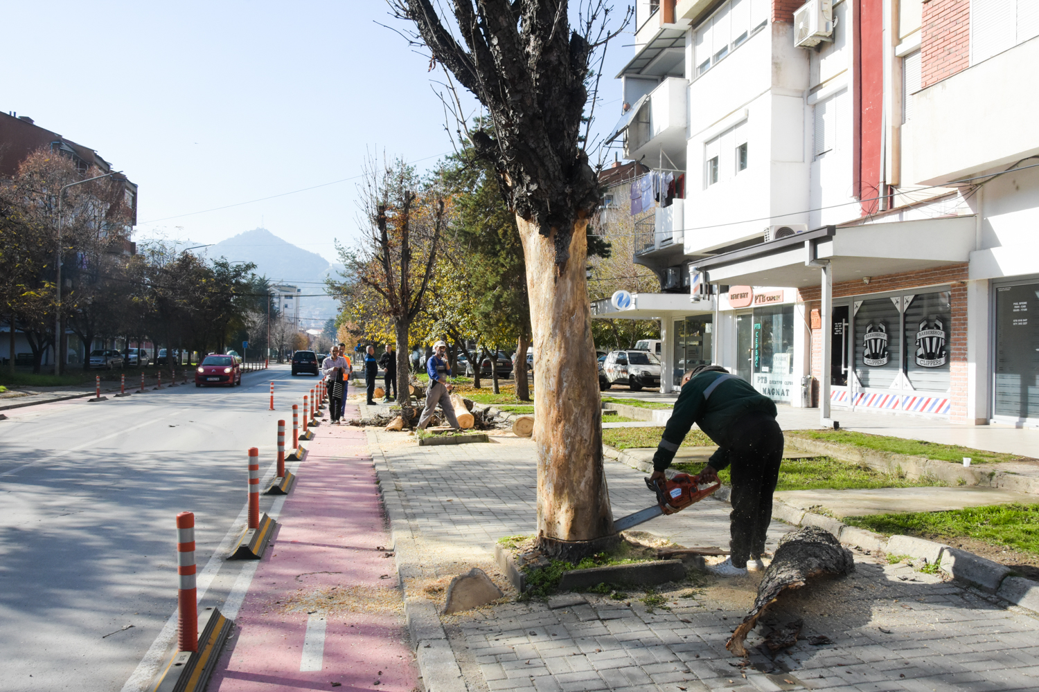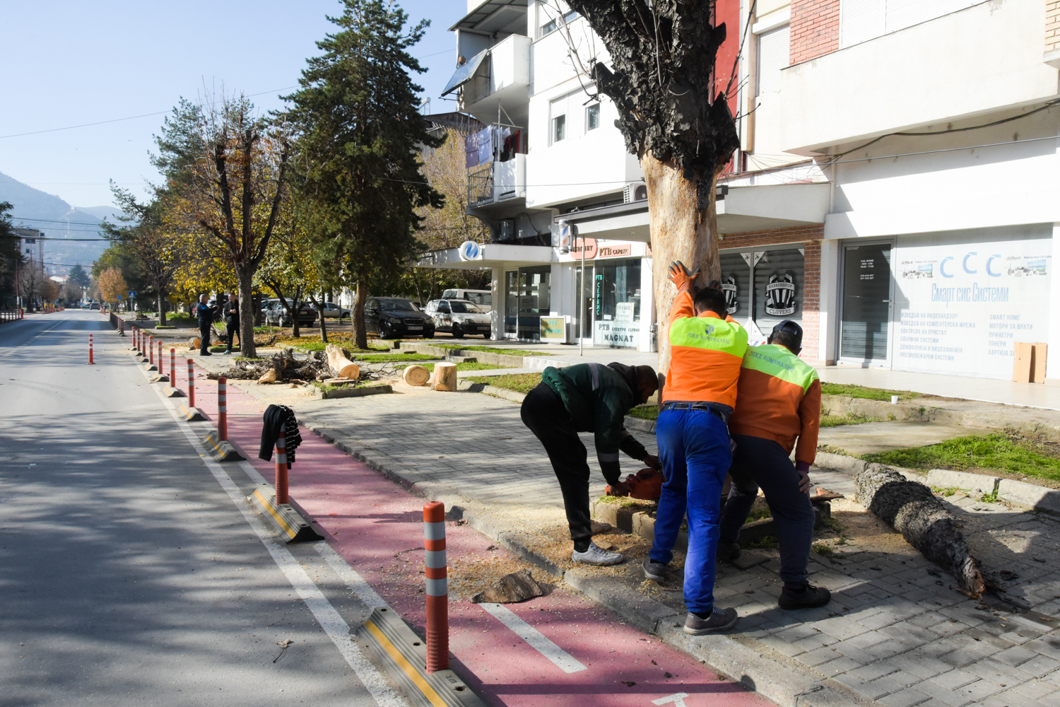 Екипите на Одделението за одржување на градското зеленило при ЈПКД „Комуналец“ Струмица денеска спроведоа есенско кроење и отстранување на исушените дрвја и гранки од дрворедите на повеќе локации во градот, меѓу кои улиците „Братство Единство“, „Маршал Тито“, „Сандо Масев“ и „Димитар Влахов“.