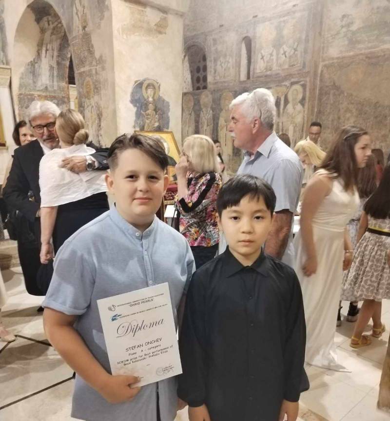 Стефан Ончев со настапот на „Охридски бисери“, најпрестижниот натпревар во нашата држава и пошироко ја заокружи учебната година. Помеѓу силна и меѓународна конкуренција Стефан се закити со второ место, а воедно стана добитник на престижната наградата која ја доделува СОКОМ, парична награда за најдобра изведба на дело од македонски композитор. На натпреварот учествуваа деца и младинци од целиот свет.