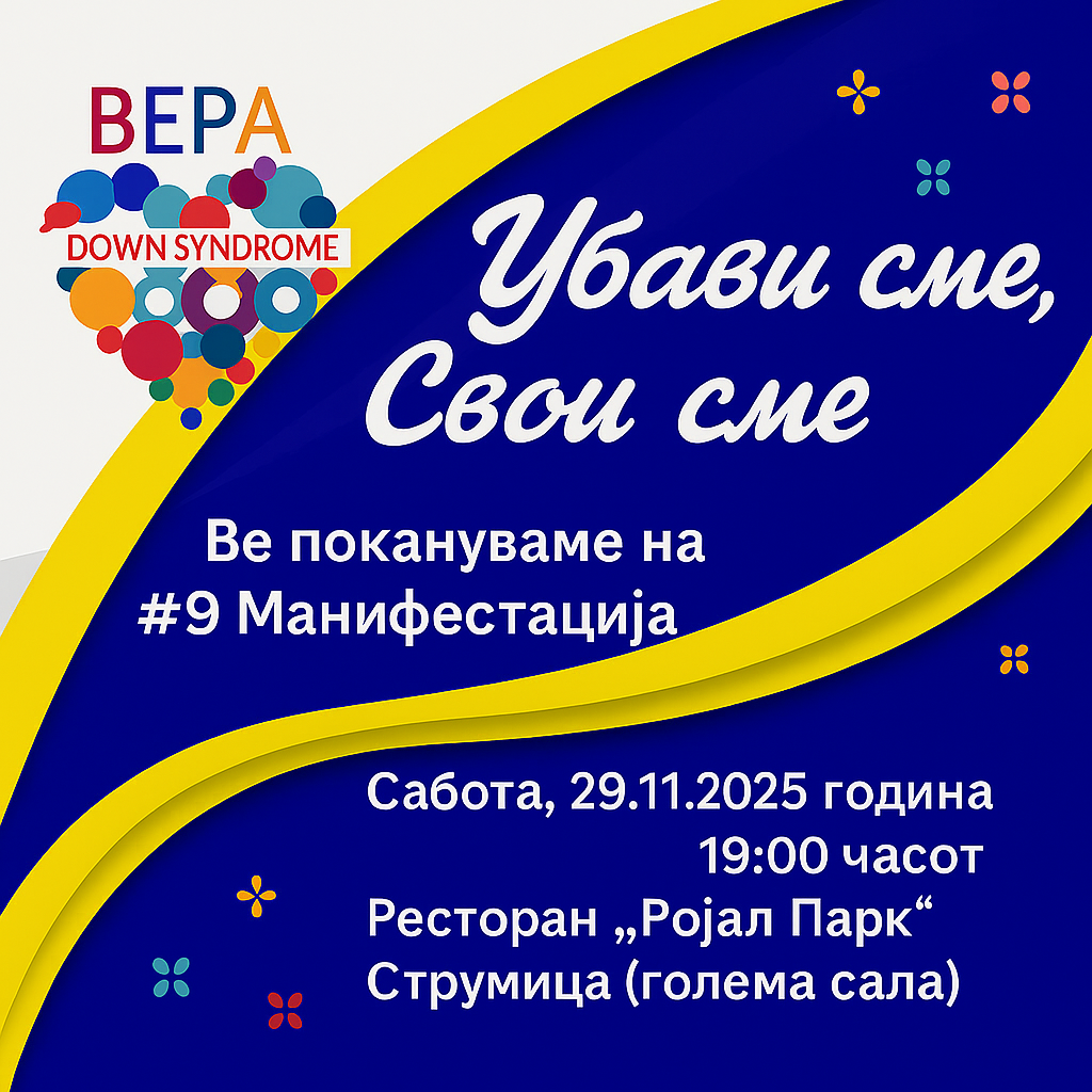 Во сабота, на 29 ноември, со почеток во 19:00 часот, во големата сала на ресторан „Ројал Парк“ во Струмица ќе се одржи деветтото издание на традиционалната манифестација „Убави сме, свои сме“, во организација на Здружението за помош и поддршка на лицата со Даунов синдром „Вера“ од Струмица.