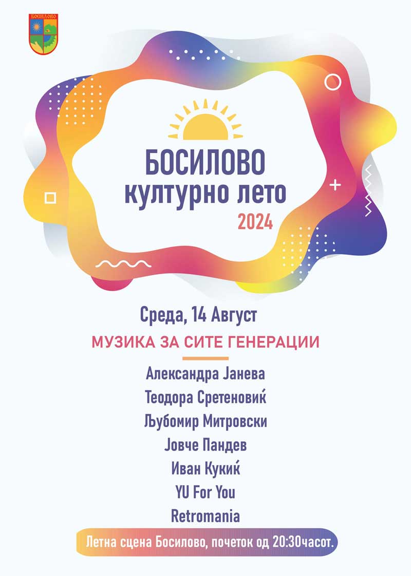 Првиот настан на 14 август од 20:30 часот на летната сцена во Босилово е најаван како „Музика за сите генерации“ на кој ќе настапат познати естрадни уметници од струмичкиот регион: Александра Јанева, Теодора Сретеновиќ, Љубомир Митровски, Јовче Пандев, Иван Кукиќ, „YU FOR YOU“ и „Ретроманија“.