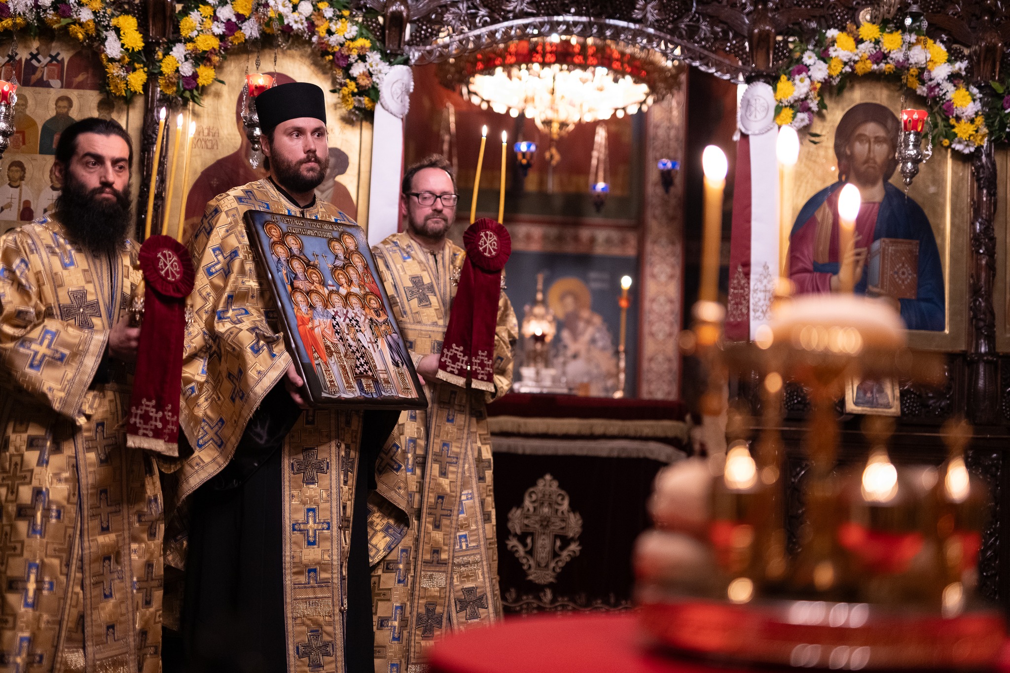 Вечерва во манастирот на Светите Петнаесет Тивериополски свештеномаченици, беше отслужена празнична вечерна богослужба на која претстоеше Неговото Преосвештенство Епископот Шабачки г. Јеротеј, во молитвено присуство на викарниот Епископ Стобиски г. Јаков.