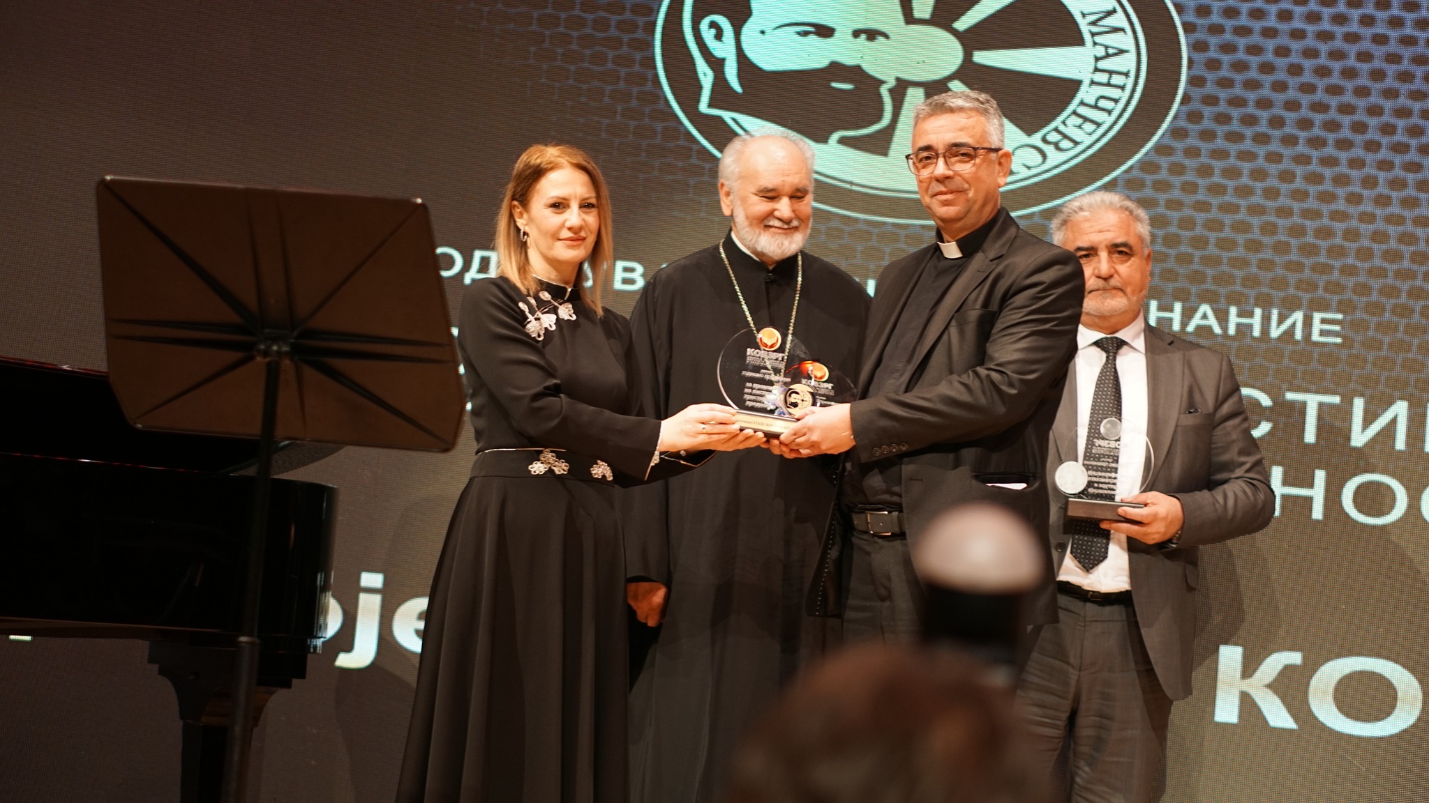 Вчера, во малата сала на Македонската филхармонија во Скопје, се одржа традиционалниот годишен прием на Комисијата за односи со верските заедници и религиозни групи во Македонија, на кој беше доделено признанието „Вељо Манчевски“. Годинашен добитник на ова признание е директорот на Радио Марија од Струмица и уредник на порталот Католици.мк, протојереј отец Гоце Костов.
