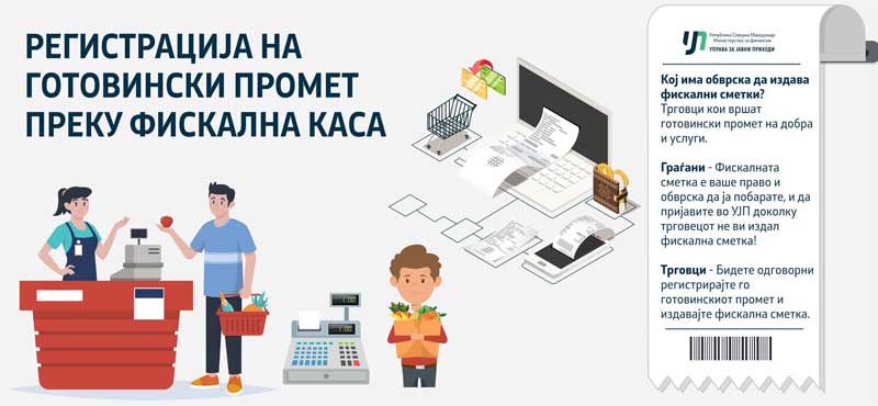 Управата за јавни приходи ги потсетува даночните обврзници кои вршат промет на добра и промет на услуги, а за кој плаќањето се извршува во готово, да го регистрираат готовинскиот промет преку фискален систем на опрема (фискални каси) и да издаваат фискални сметки.