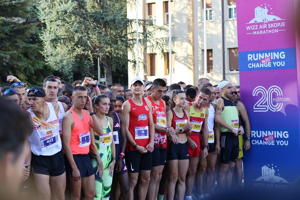 Рекордни 13.400 натпреварувачи од 55 земји денеска ги исполнија скопските улици со спортска атмосфера, натпреварувачки дух и многу ведри и задоволни лица. Ваква беше сликата на стартот на јубилејното 20-то издание на Виз Ер Скопски маратон.