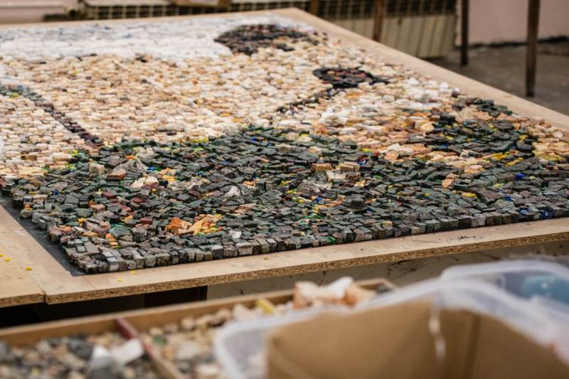 Филев вели дека мозаикот го прави на индиректен начин на изработка кој е поделен на повеќе делови, после тоа се лие во бетон и на крајот ќе биде монтиран на Саат кулата.