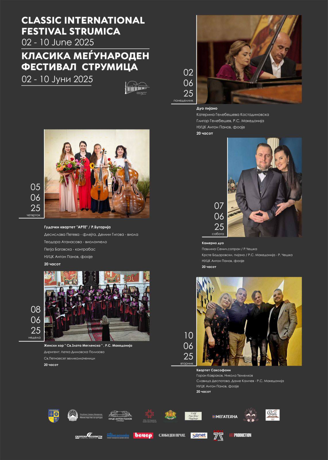Традиционално, веќе четврта година во Струмица од 2 до 10 јуни ќе се одржува фестивалот на камерна музика, единствен од ваков вид во Македонија – „Classic International Festival Strumica 2025“.