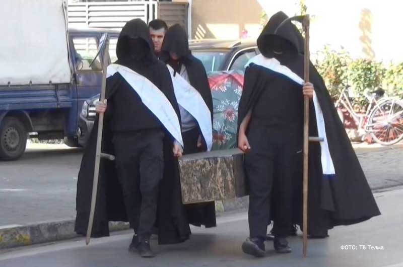 Симболичен погреб пред влезот на општинската врата во Ново Село. Облечени во костими што ја претставуваат смртта, со посмртна поворка положија ковчег со венец и свежо цвеќе, алудирајќи дека отворањето на индустриски објекти во регионот ќе ја уништи природата, објави ТВ ТЕЛМА. Во говорите активистите порачаа дека нема да дозволат отворање на леарница за алуминиум.