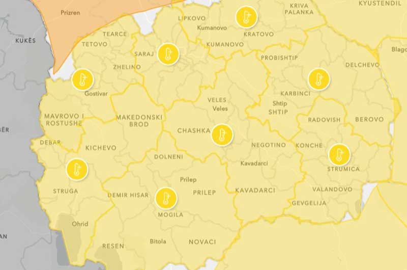 УХМР: АКТУЕЛНО ПРЕДУПРЕДУВАЊЕ – жолто ниво на опасност од високи температури
