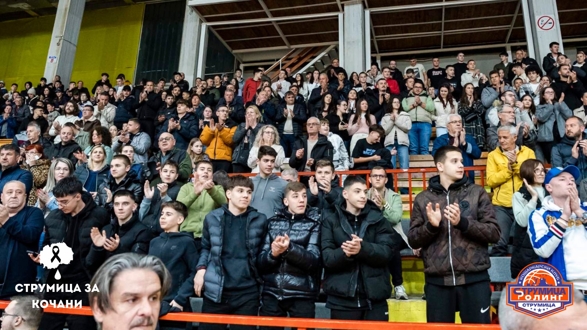 Во еден тежок натпревар полн со емоции, сé уште со тага по изгубените млади луѓе, екипата КК „Струмица Ролинг“ победи со 82:54 над екипата „Баскет Дино“ од Кочани. Но победата не беше толку важна за домаќините, туку солидарноста на струмичани кои дојдоа на овој натпревар во голем број и донираа за семејствата на загинатите и повредените во големиот пожар во Кочани. Се собраа 125.000 денари од купените влезници за натпреварот. Парите ќе бидат уплатени на солидарната сметка на Црвен Крст наменета за помош на настраданите во Кочани.