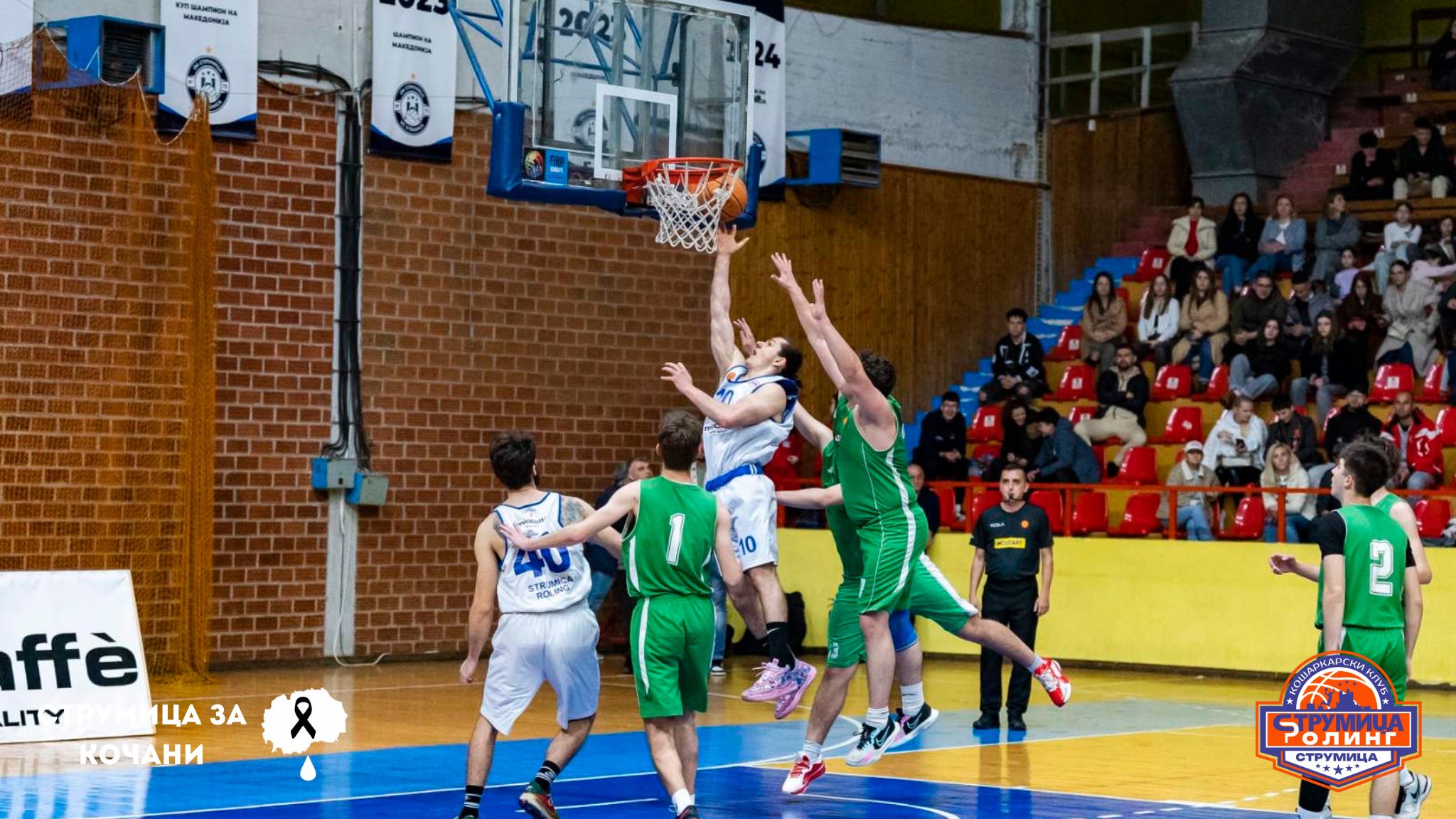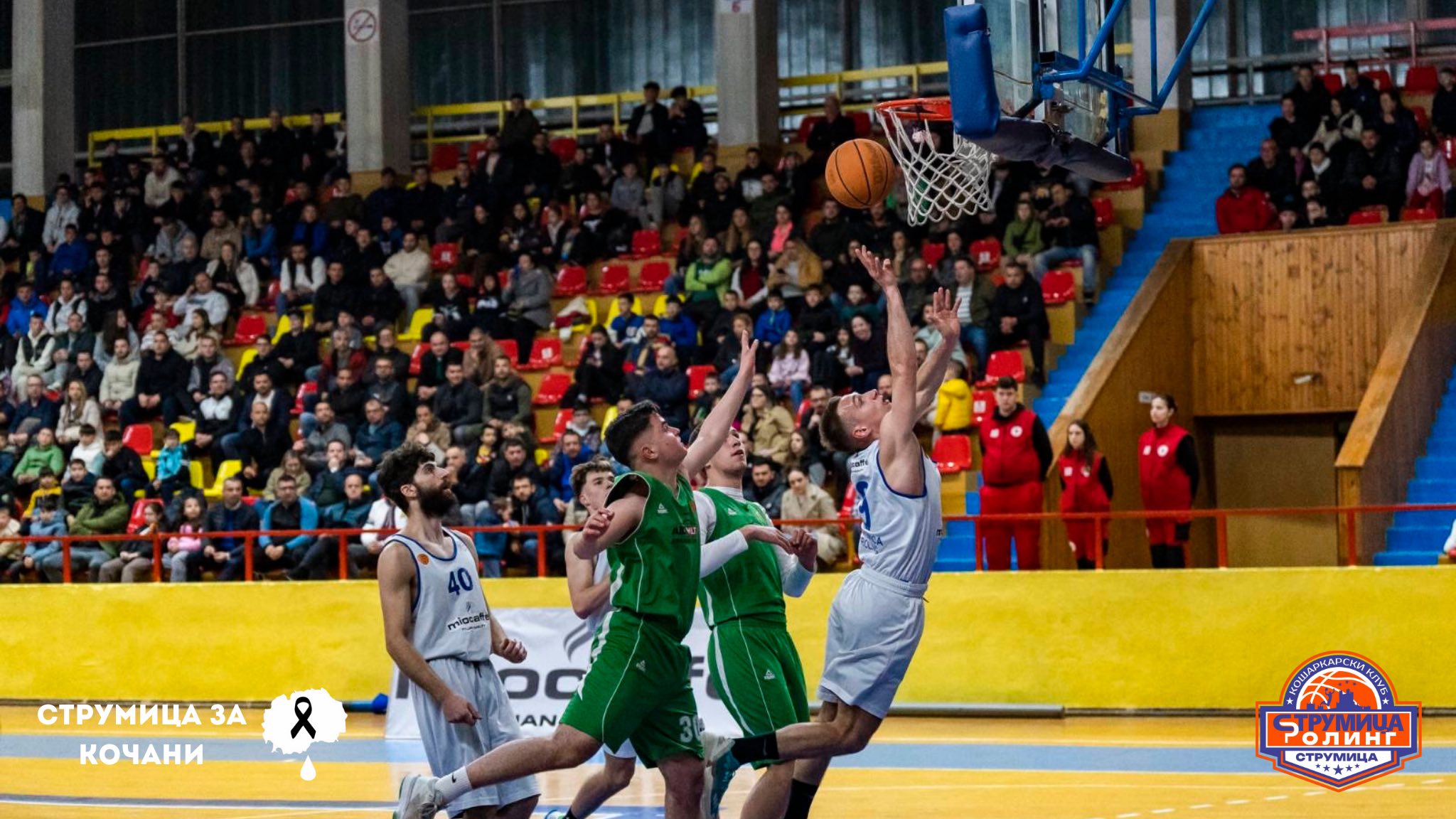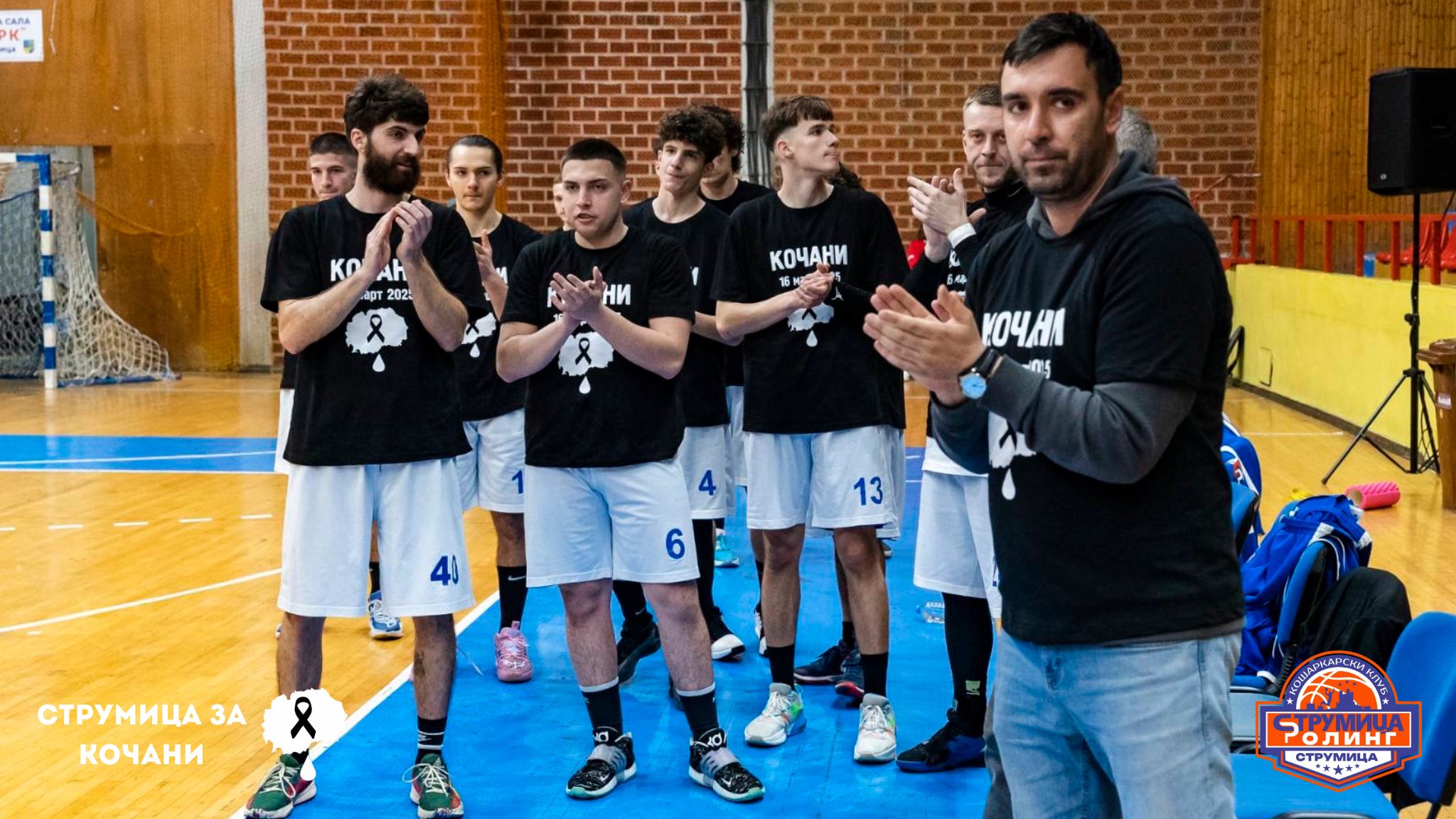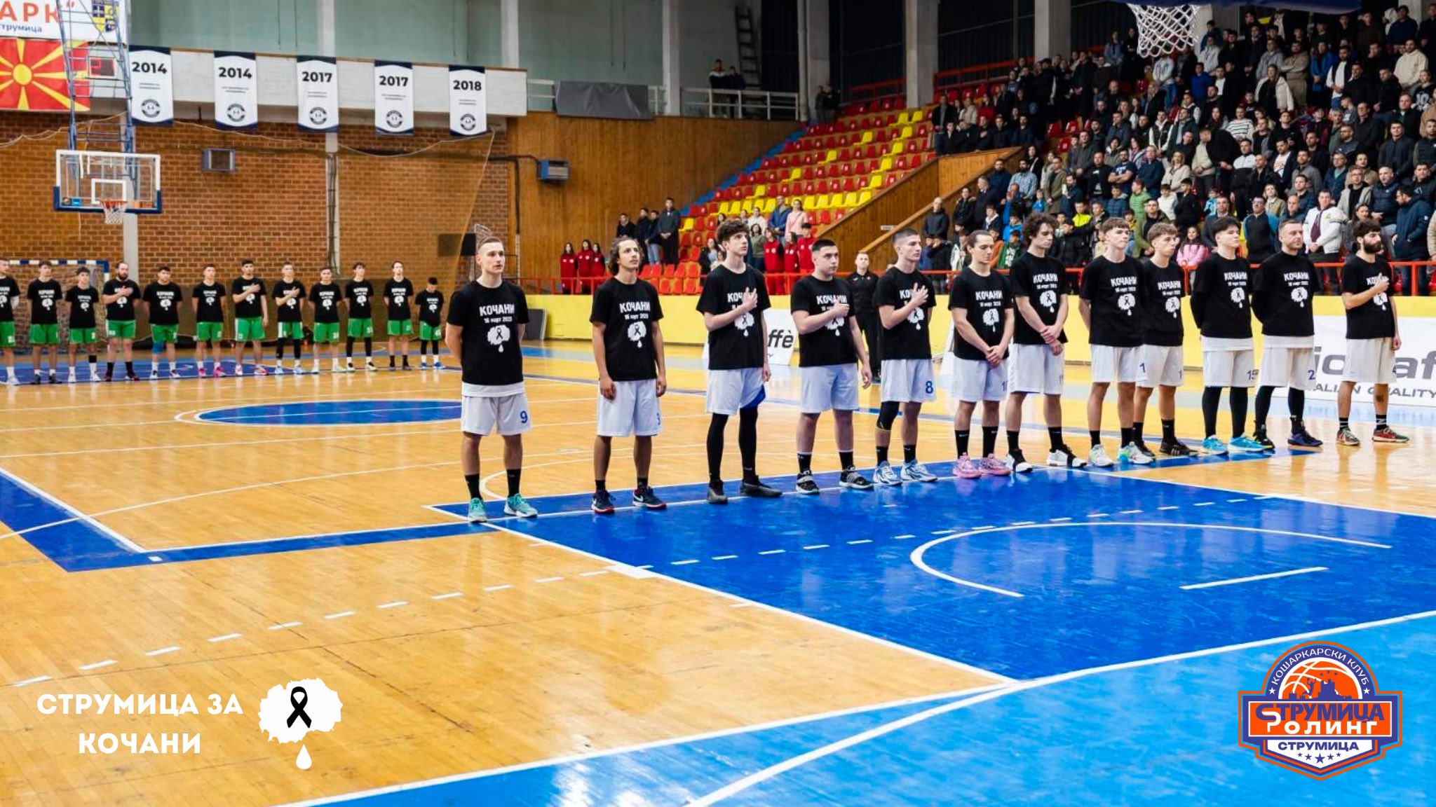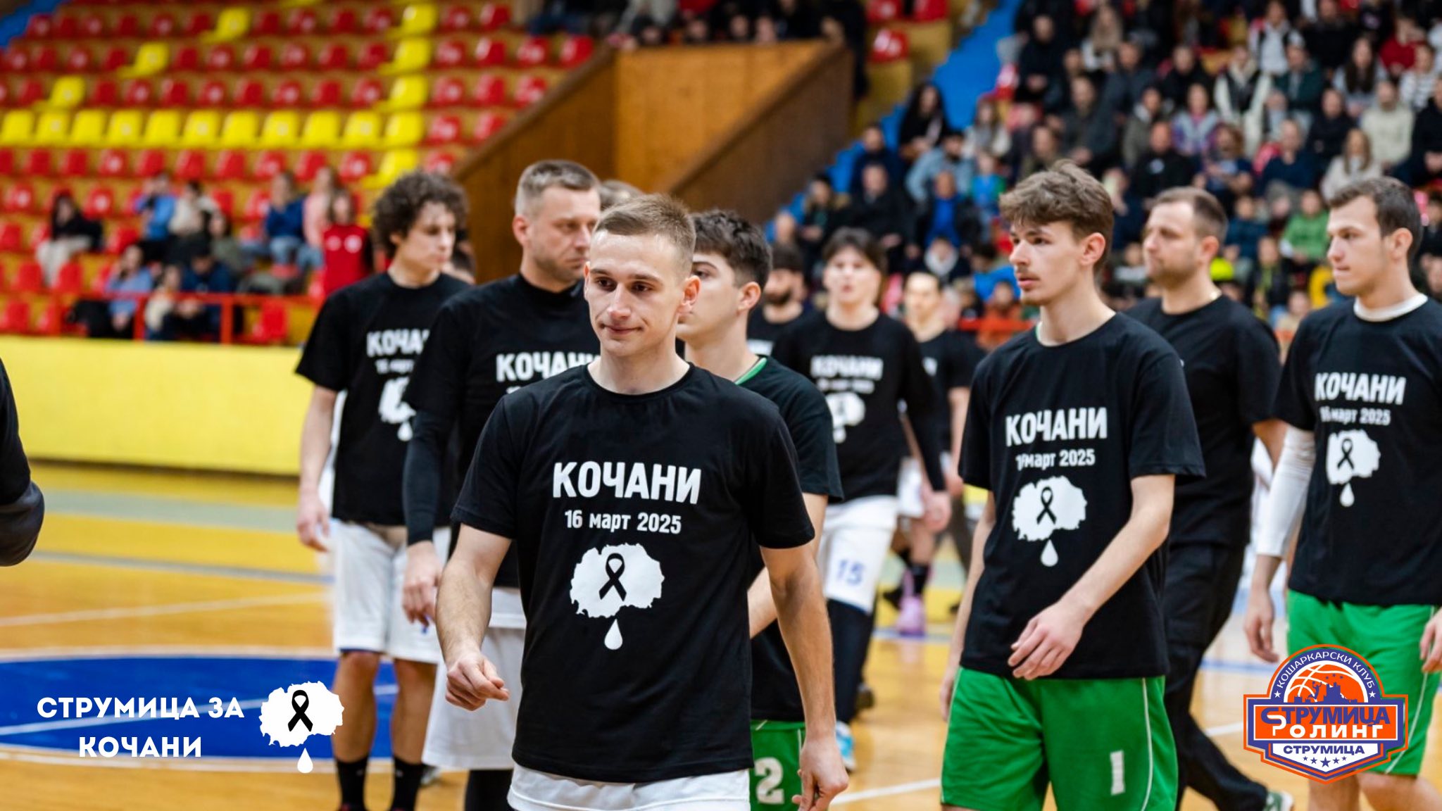 Одложениот натпревар од Третата кошаркарска македонска лига помеѓу КК „Баскет Дино“ од Кочани и КК „Струмица Ролинг“, кој требаше да се одржи на 16 март во Кочани, а поради трагедијата беше одложен, се одржа синоќа во Спортската сала „Парк“ во Струмица.