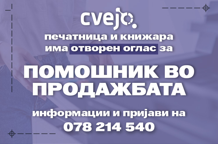 Отворена е позиција Помошник за продажба во нашата книжарница и печатница. Приклучи се и стани дел од нашиот тим.